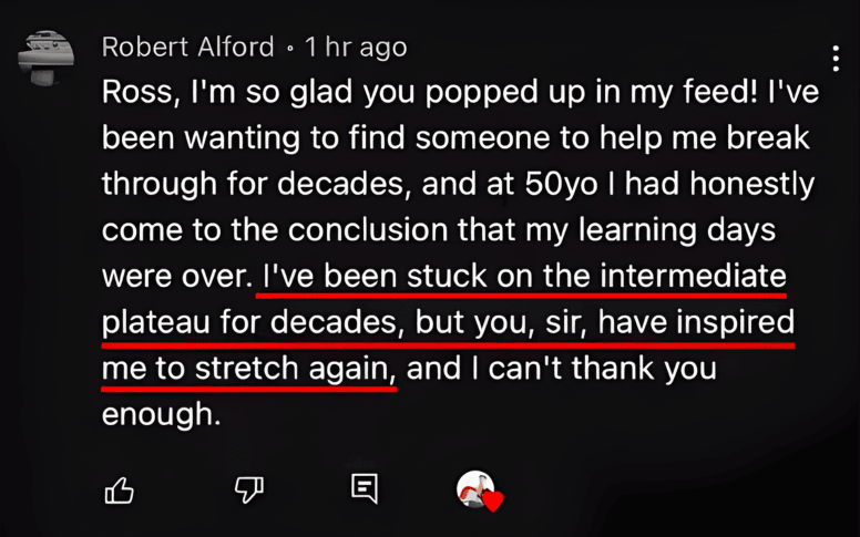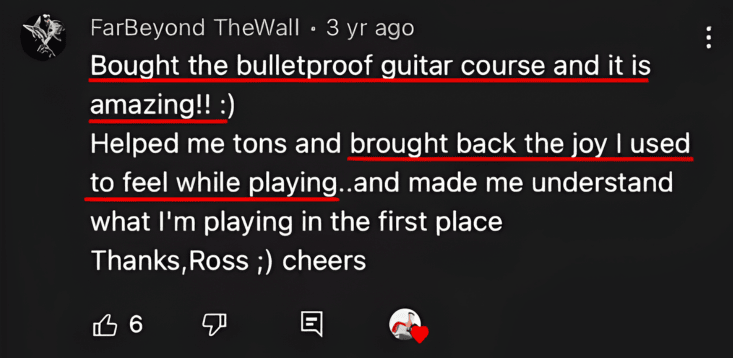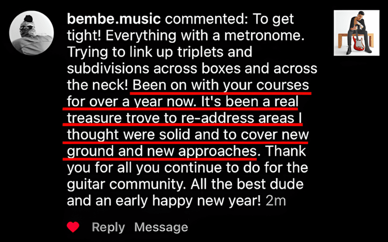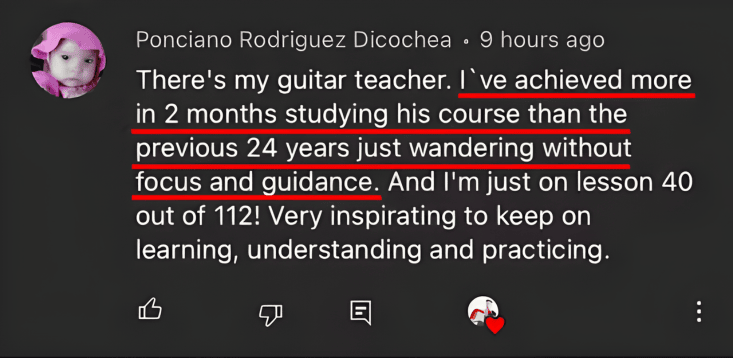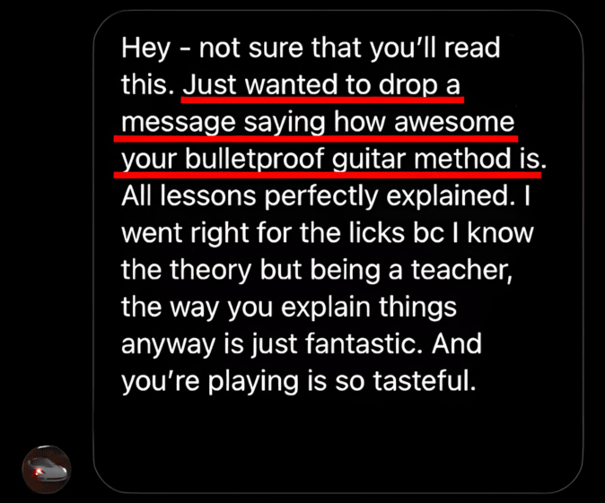 It's the same approach that helped me break free from my own 5-year plateau, and has since helped thousands of guitarists in over 100 countries do the same.