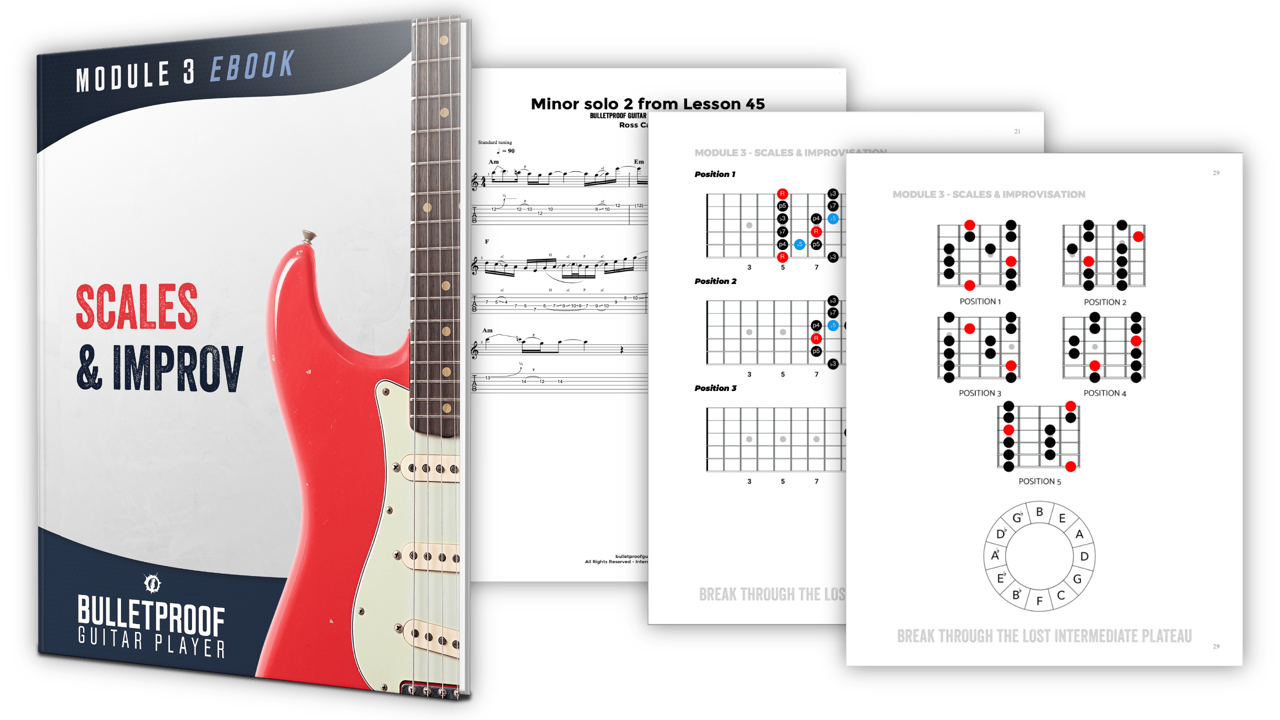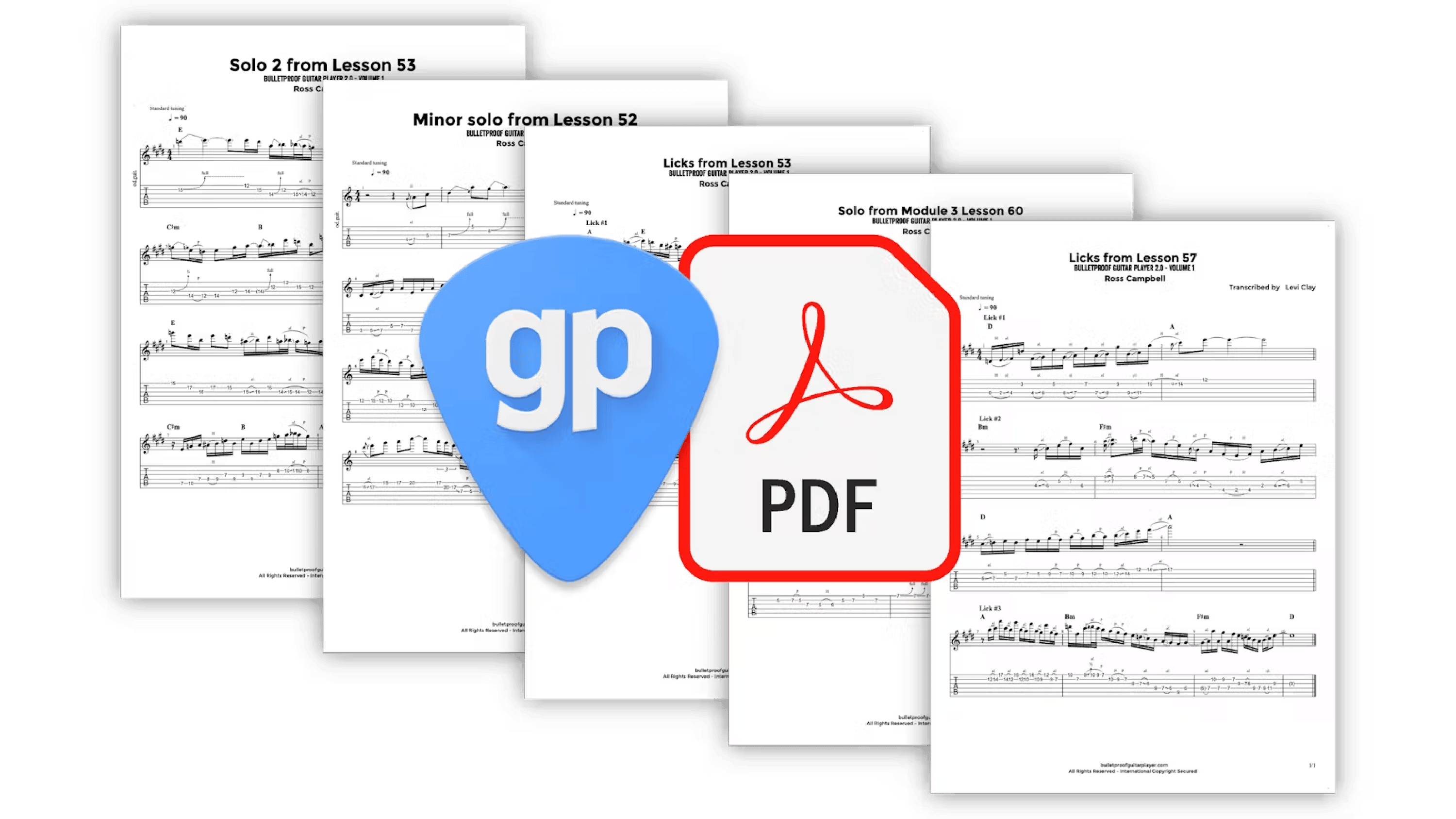 Containing fretboard diagrams and practice sheets for all scales taught in the course. Gain a deeper understanding of how and when to apply each scale in your solos.